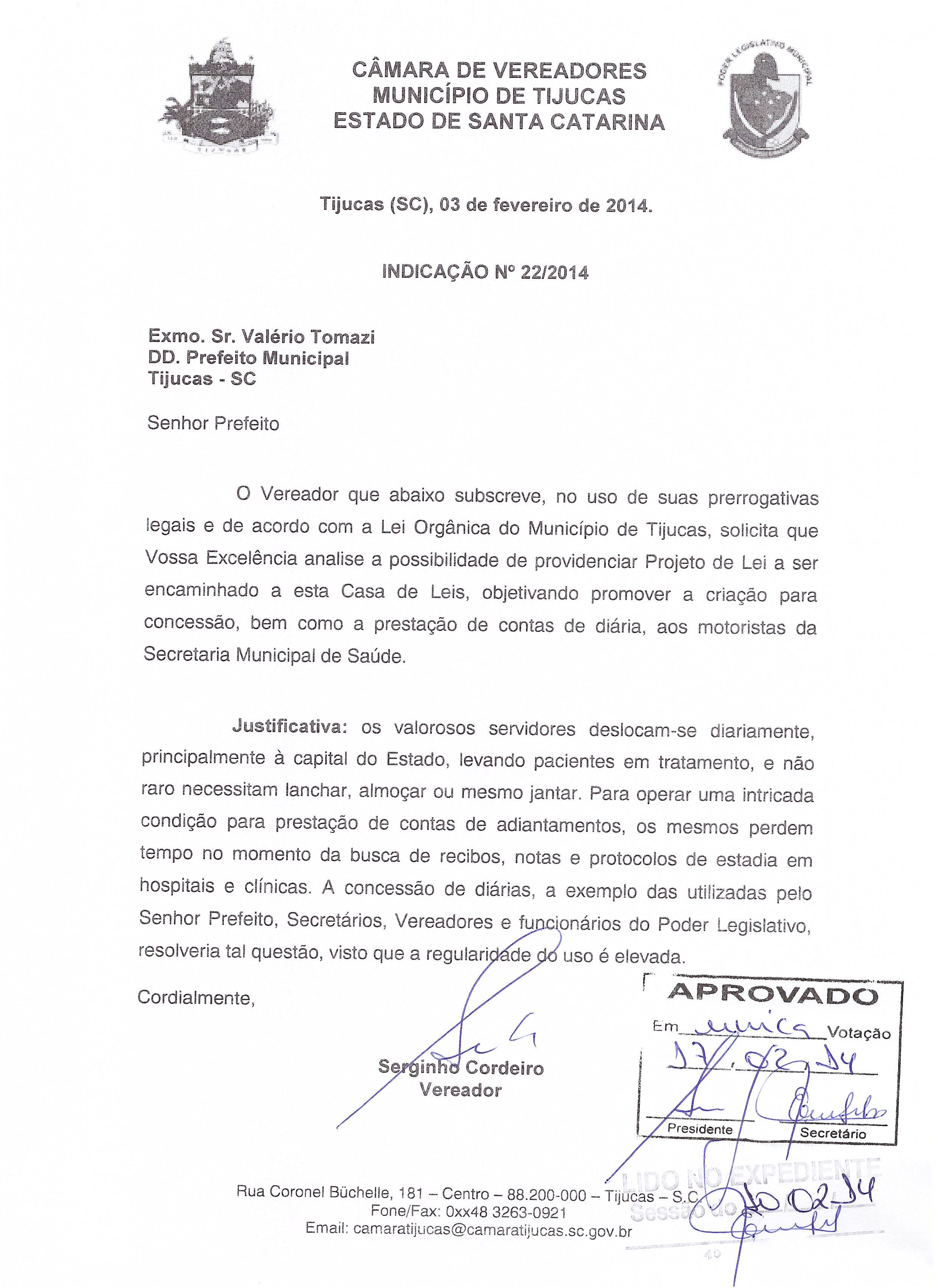 | IND 22/2014 APROVADA | Avulso | 17/02/2014 | SERGINHO CORDEIRO | 1586.jpeg |