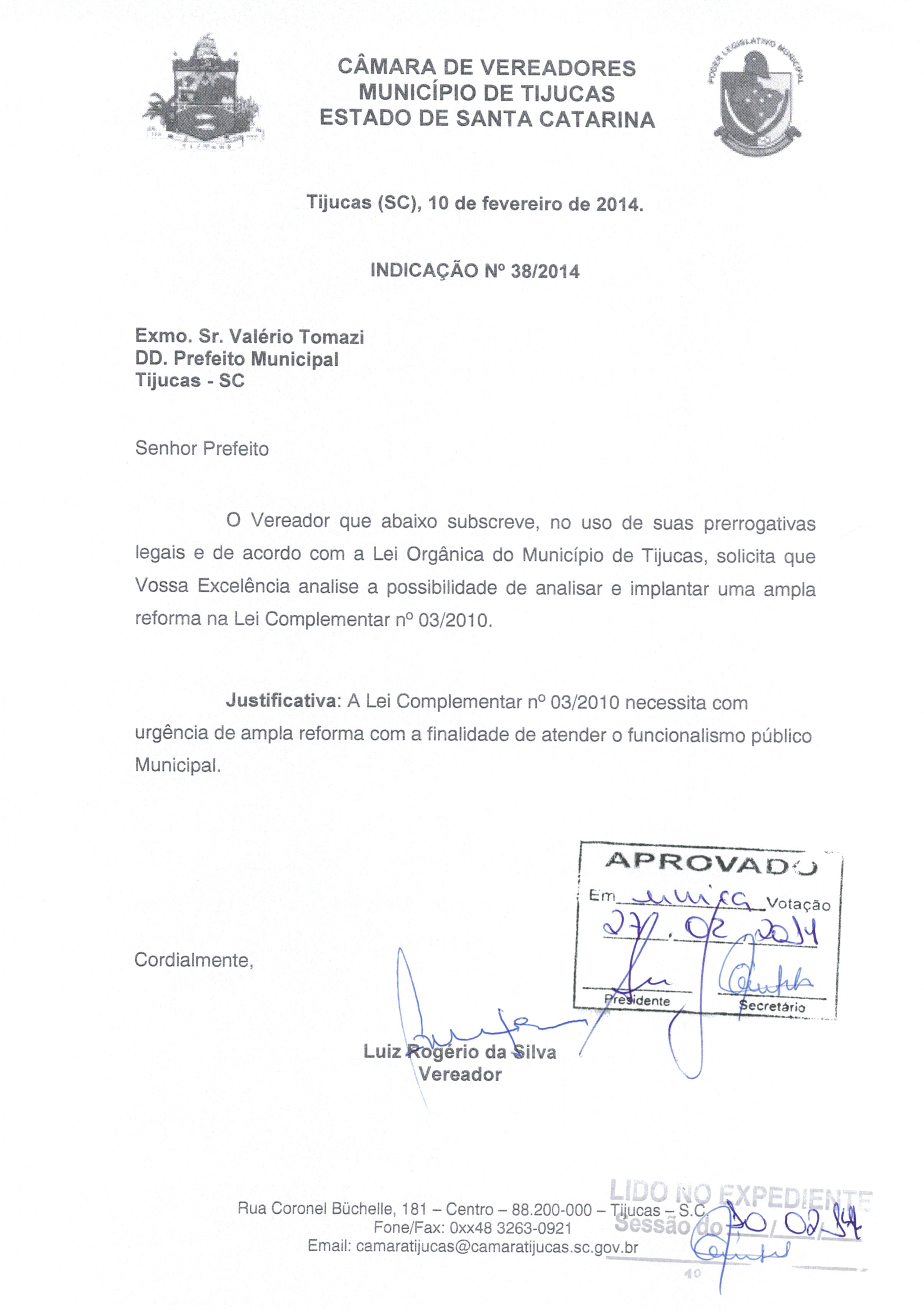 | IND 38/2014 APROVADA | Avulso | 27/02/2014 | LUIZ ROGÉRIO DA SILVA | 1657.jpeg |