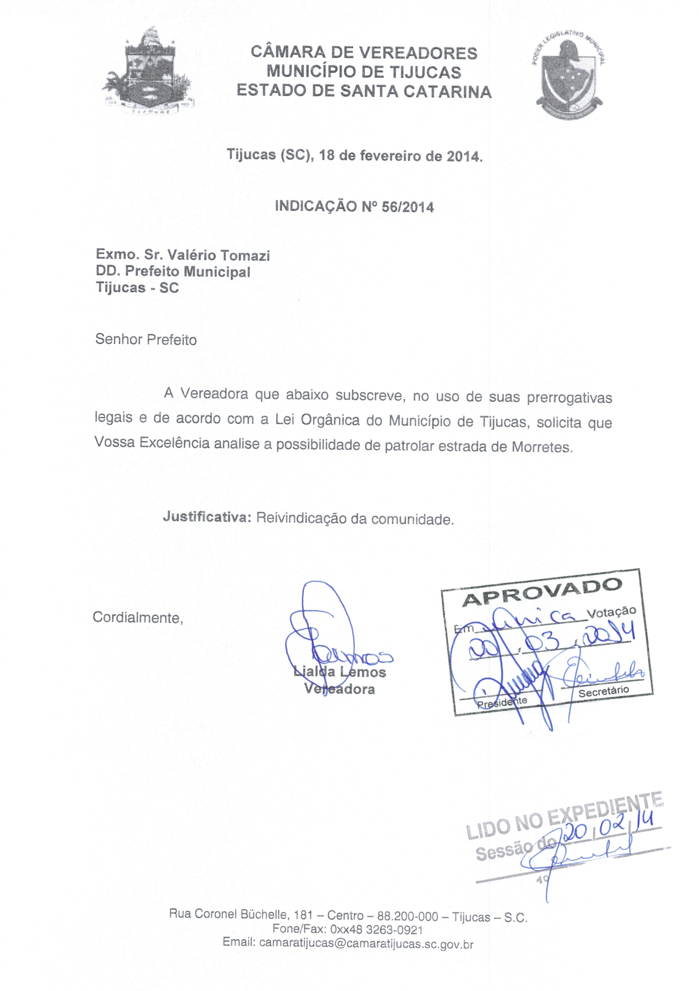 Documentos Acessórios (INDICAÇÃO nº 56 de 2014)
