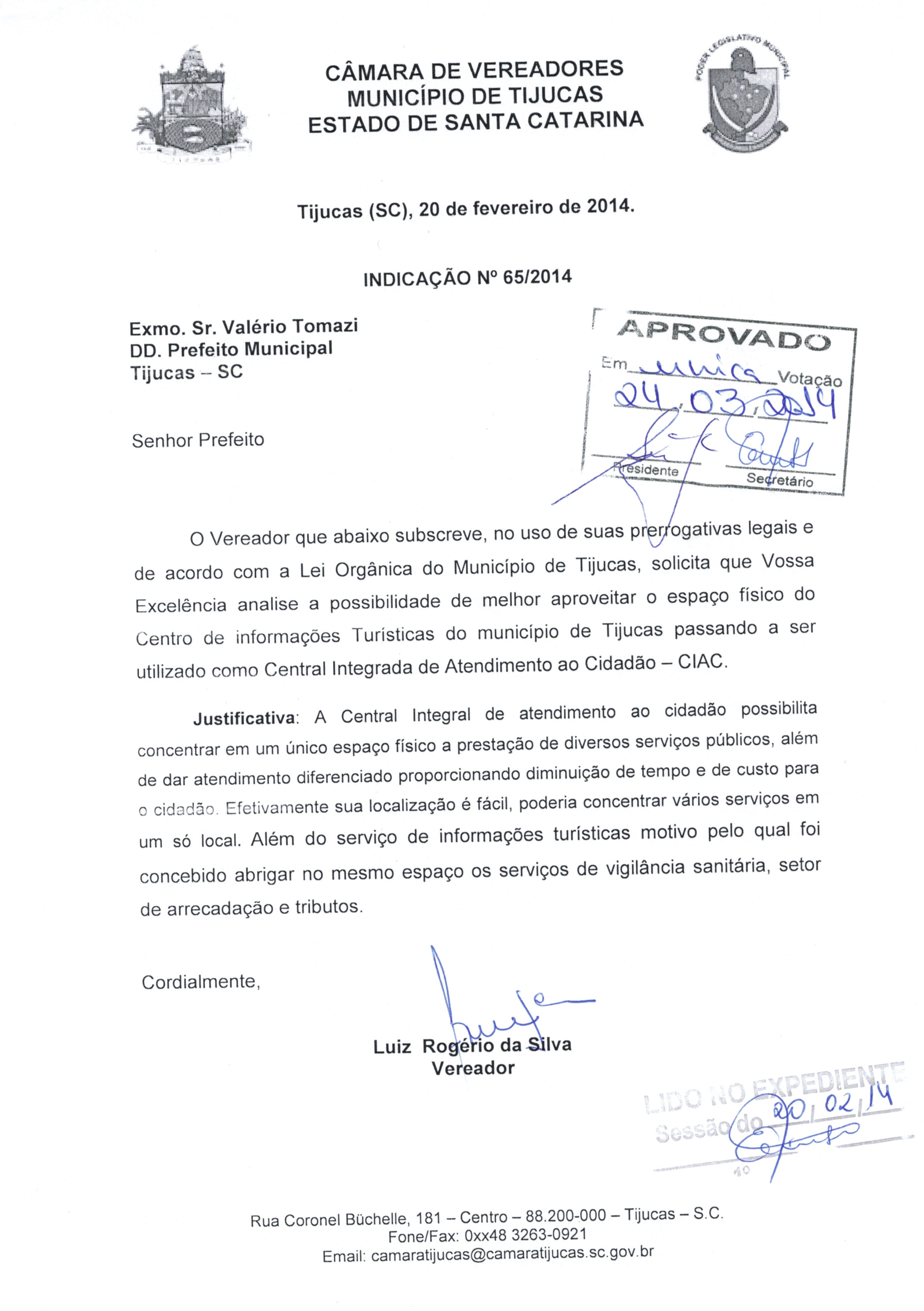 IND. Nº 65/2014 APROVADA | Avulso | 24/03/2014 | LUIZ ROGÉRIO DA SILVA | 1742.jpeg |