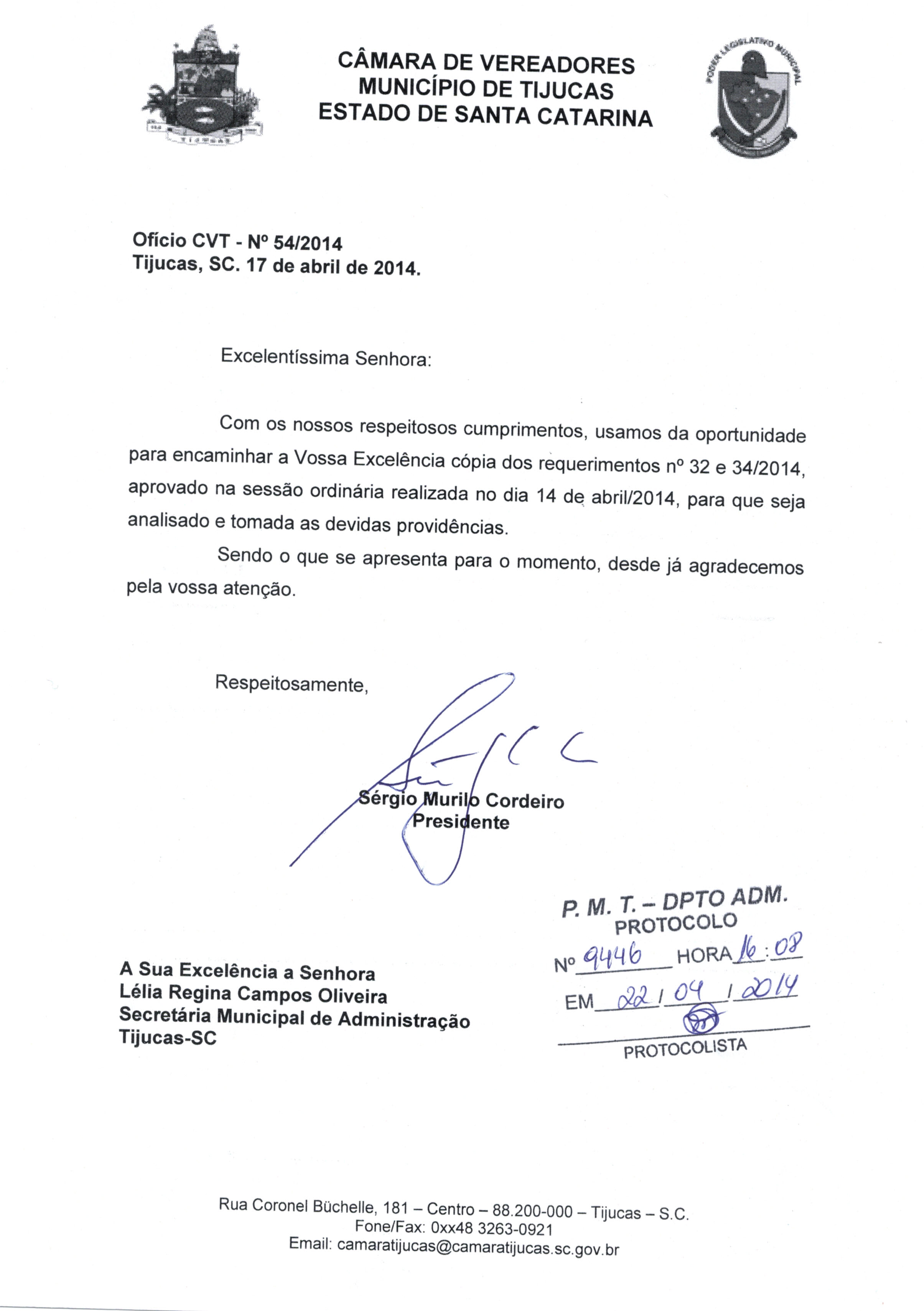 | OFÍCIO CVT Nº 54/2014 | Ofício | 22/04/2014 | SERGIO MURILO CORDEIRO | 1902.jpeg |