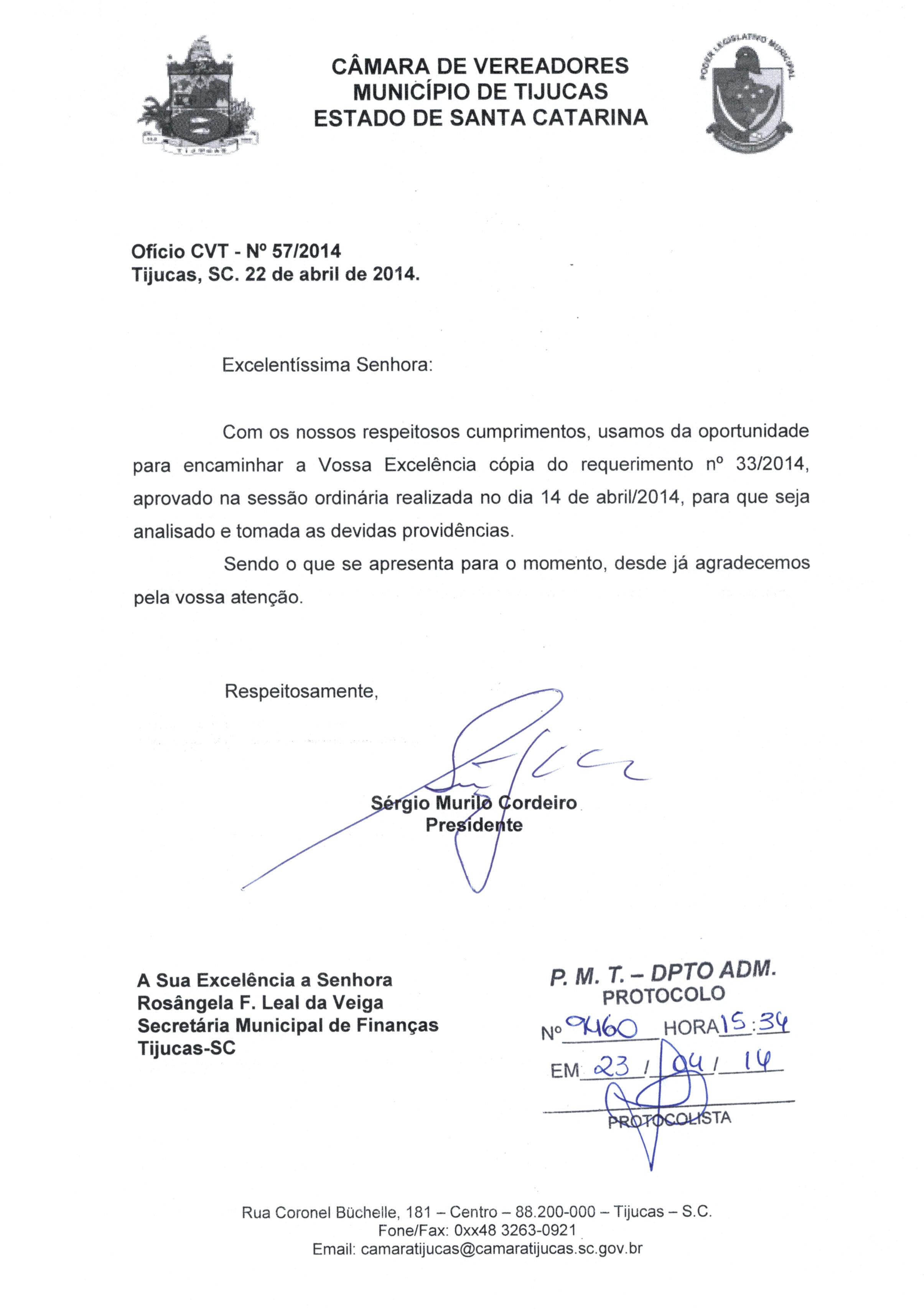 | OFÍCIO CVT Nº 57/2014 | Ofício | 23/04/2014 | SERGIO MURILO CORDEIRO | 1919.jpeg |