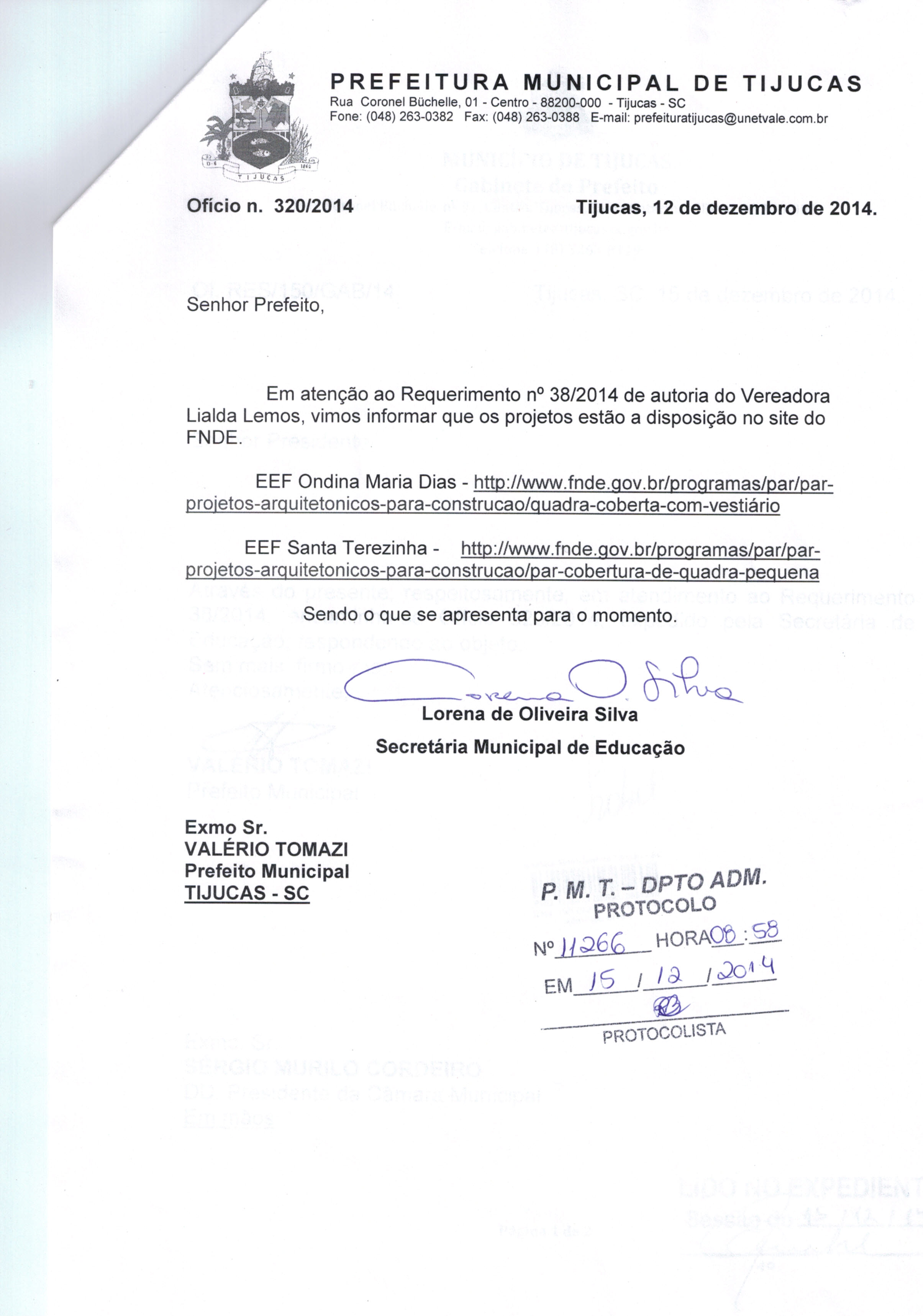 | OFÍCIO Nº 320/2014 | Avulso | 15/12/2014 | LORENA DE OLIVEIRA SILVA | 3104.jpeg |