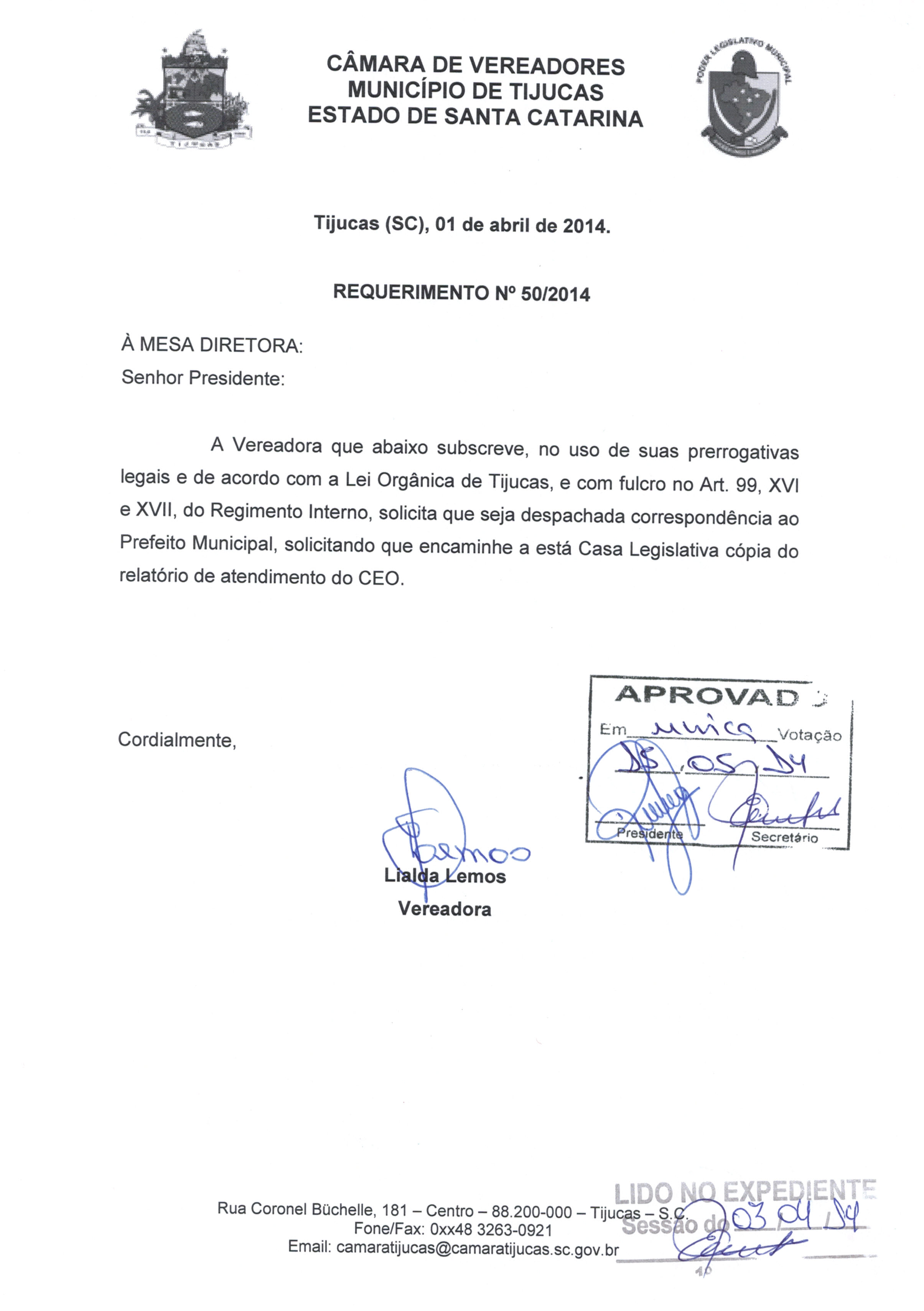 | REQ. Nº 50/2014 APROVADO | Avulso | 16/05/2014 | LIALDA LEMOS | 2100.jpeg |