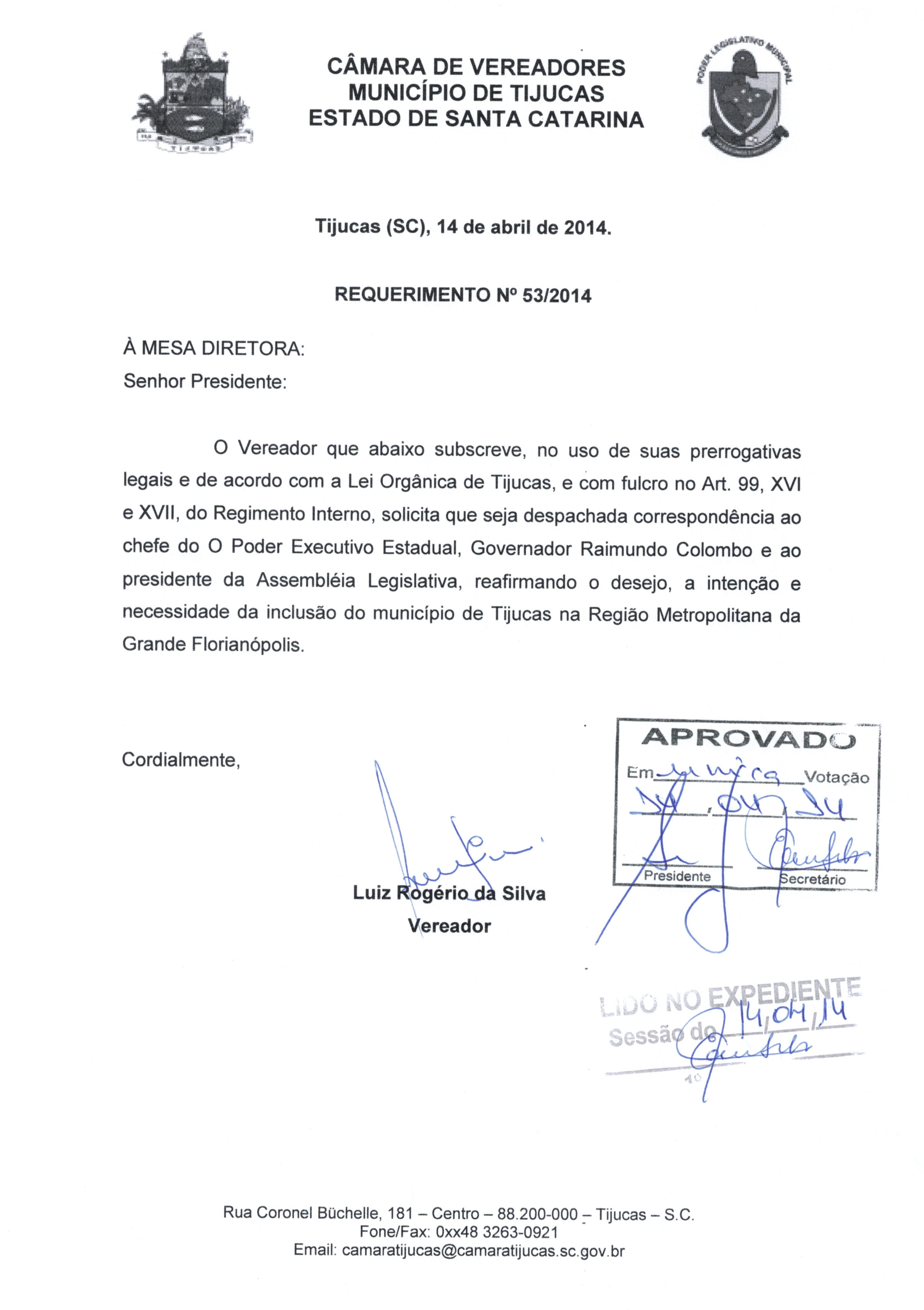 | REQ. Nº 53/2014 APROVADO | Avulso | 14/04/2014 | LUIZ ROGÉRIO DA SILVA | 1834.jpeg |