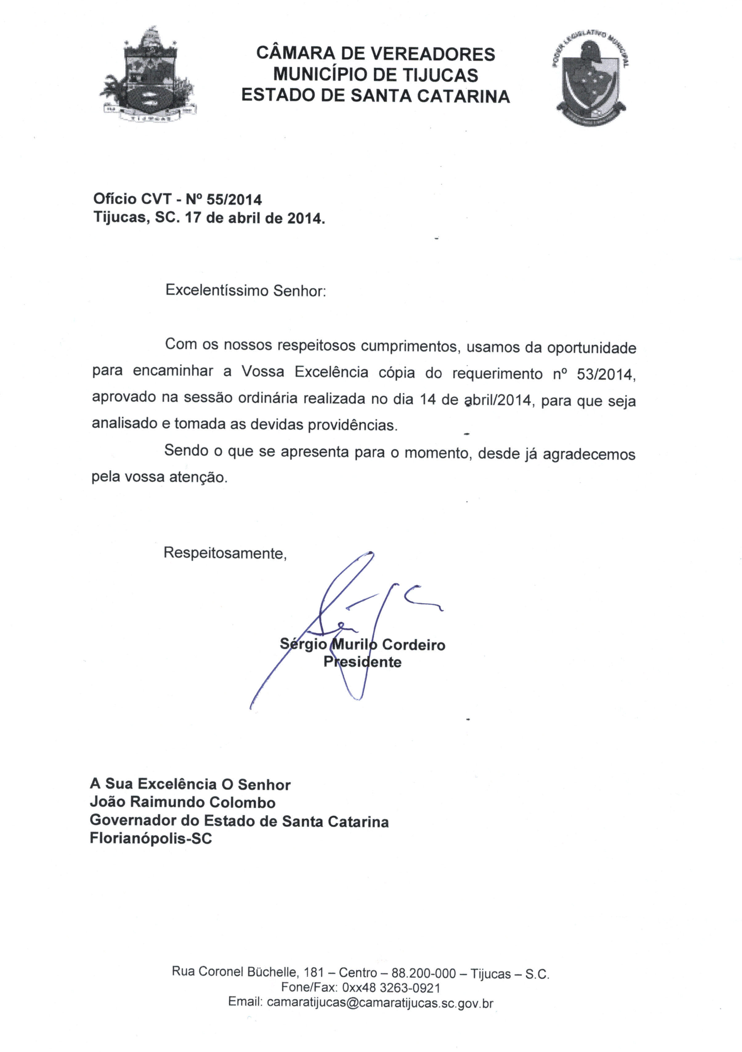 | OFÍCIO CVT Nº 55/2014 | Ofício | 27/05/2014 | SERGIO MURILO CORDEIRO | 2160.jpeg |