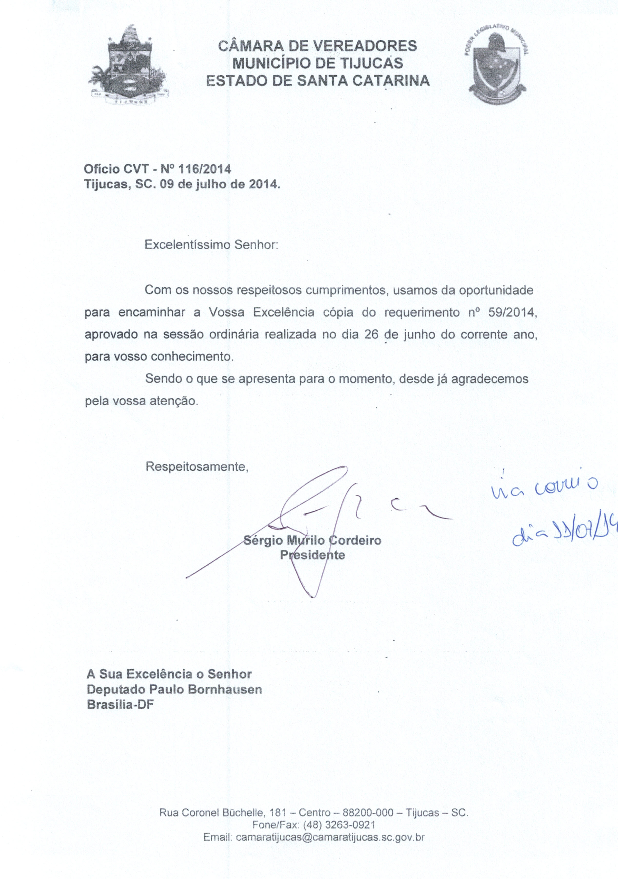 | OFÍCIO CVT Nº 116/2014 | Ofício | 11/07/2014 | SERGIO MURILO CORDEIRO | 2314.jpeg |