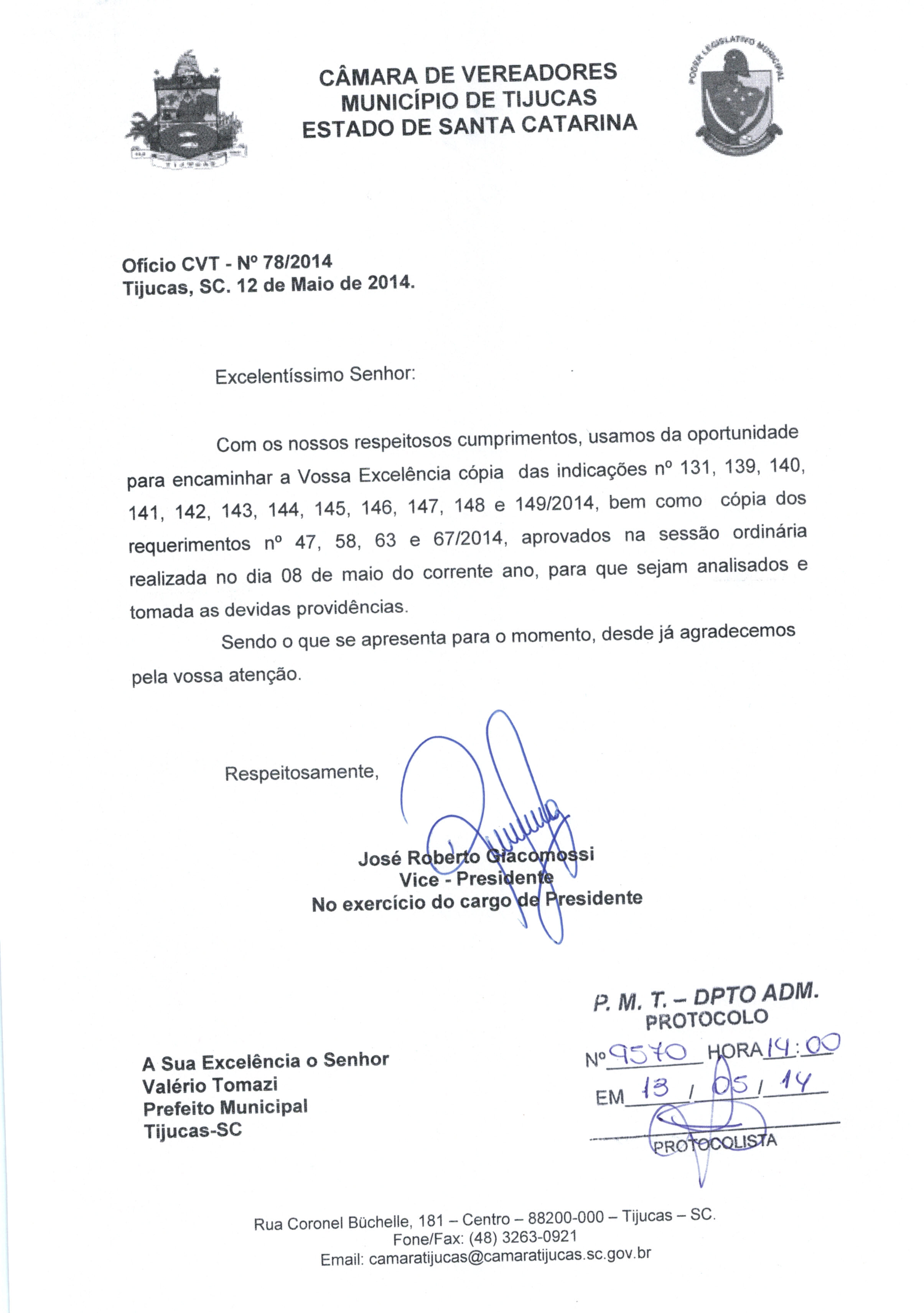 OFÍCIO Nº 78/2014 | Ofício | 13/05/2014 | JOSÉ ROBERTO GIACOMOSSI | 2068.jpeg |