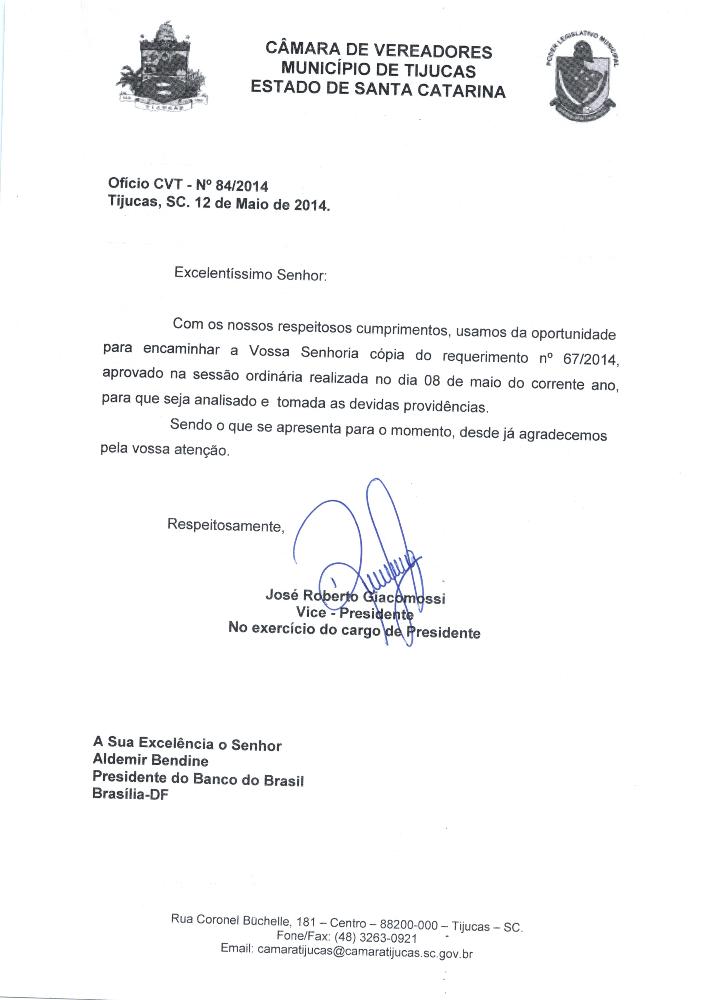 OFÍCIO CVT Nº 84/2014 | Ofício | 27/05/2014 | JOSÉ ROBERTO GIACOMOSSI | 2158.jpeg |