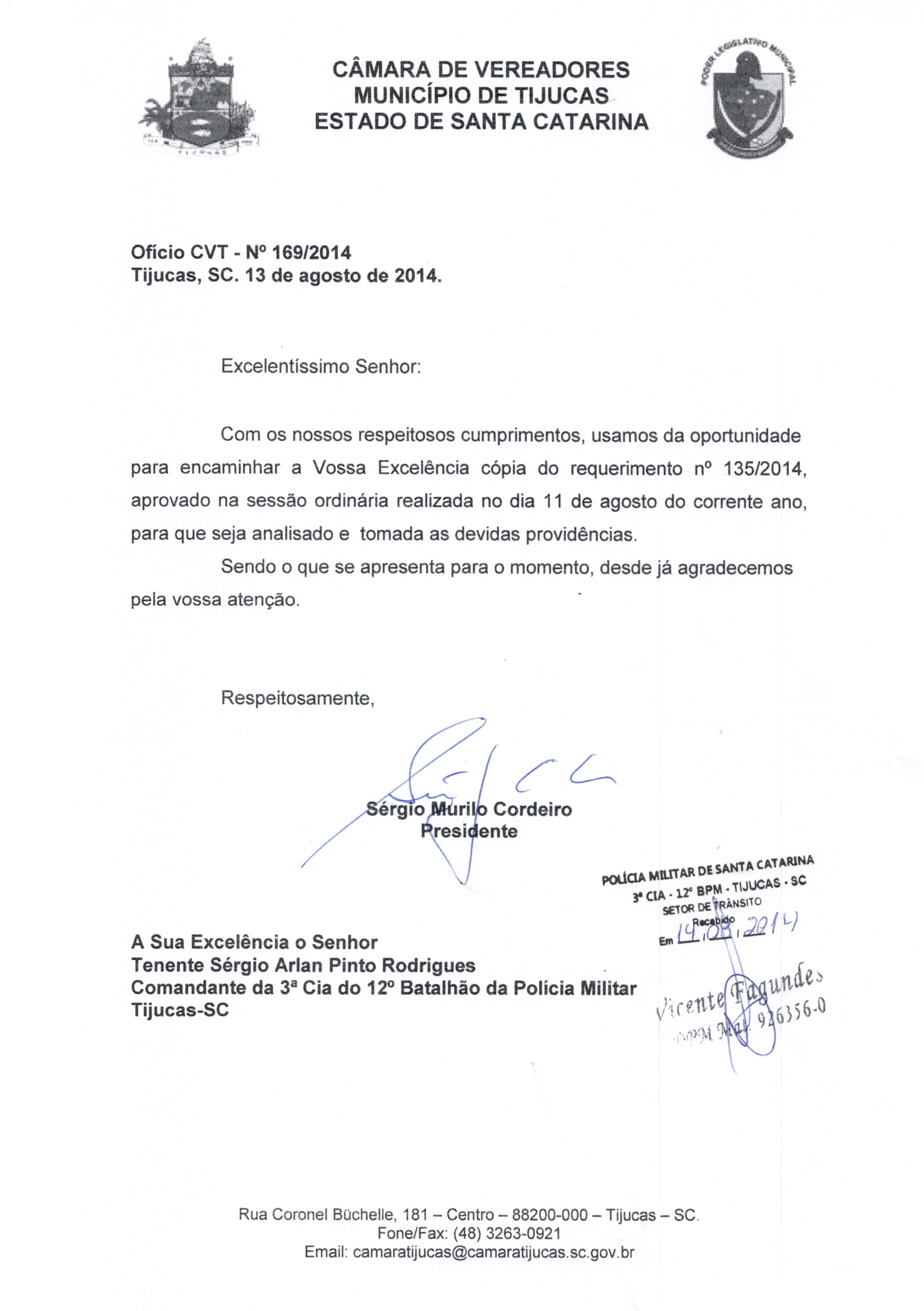 OFÍCIO CVT Nº 169/2014 POLICIA | Ofício | 14/08/2014 | SERGIO MURILO CORDEIRO | 2566.jpeg |