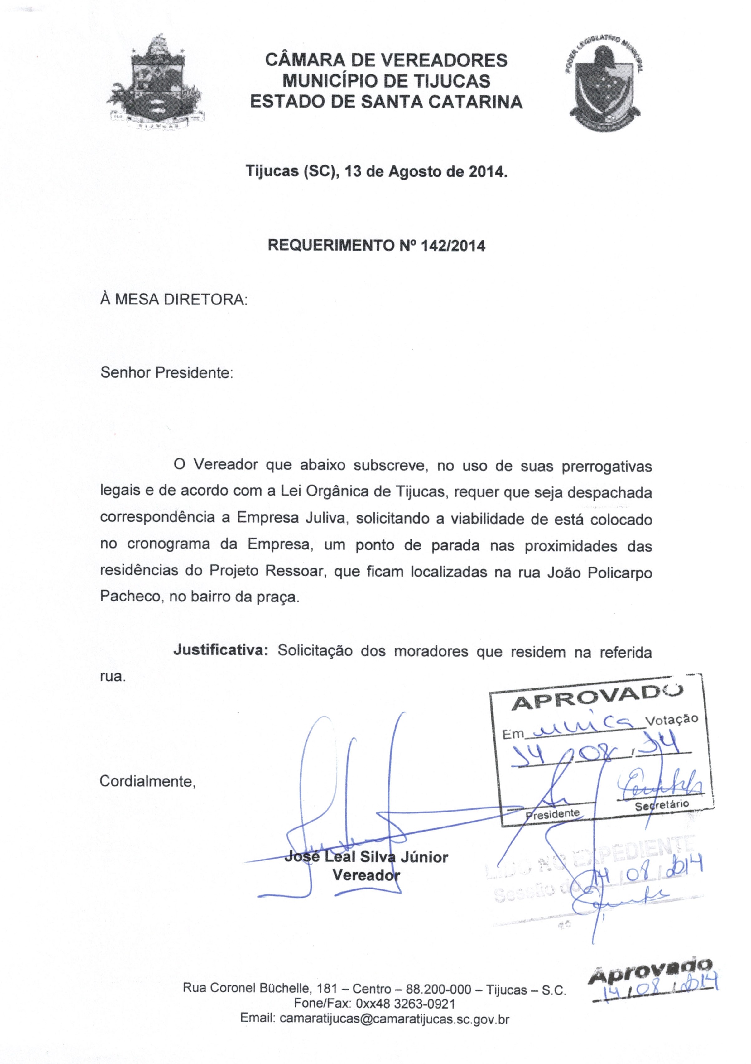 | REQ. Nº 142/2014 APROVADO | Avulso | 14/08/2014 | JOSÉ LEAL SILVA JÚNIOR | 2613.jpeg |