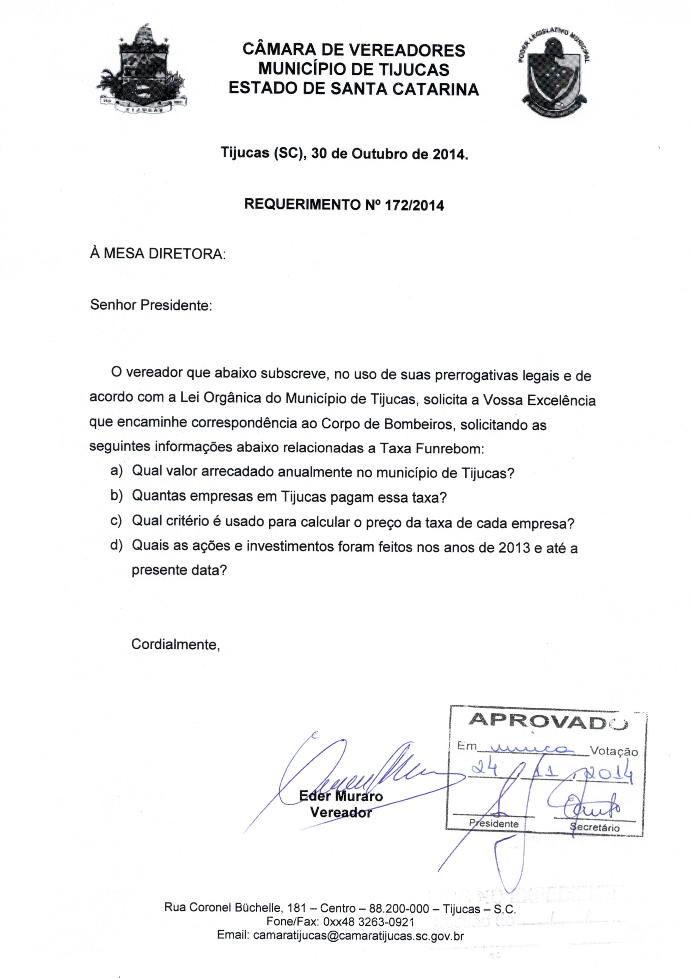 | REQ. Nº 172/2014 APROVADO | Avulso | 25/11/2014 | EDER MURARO | 2881.jpeg |