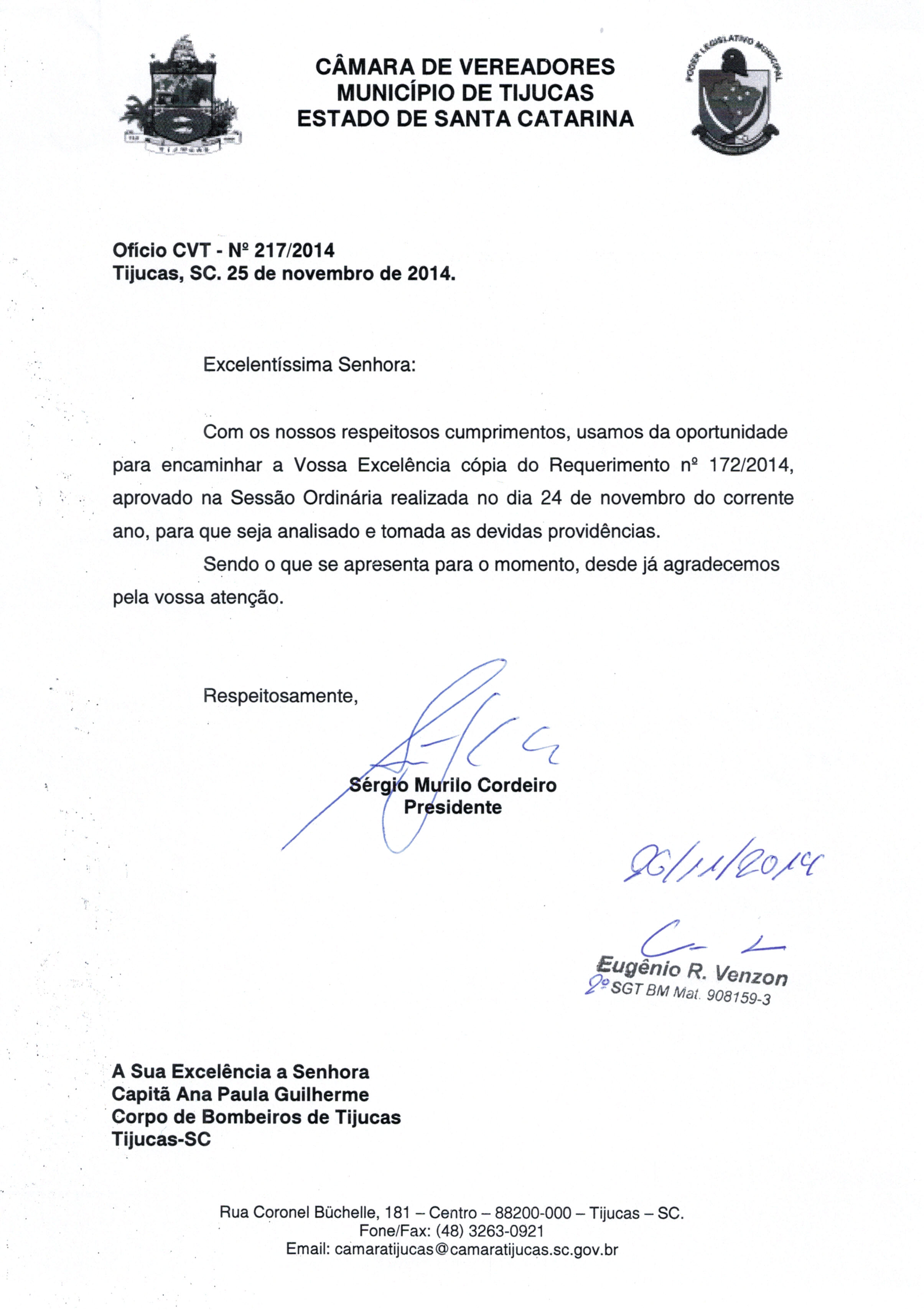| OFÍCIO CVT Nº 217/2014 | Ofício | 26/11/2014 | SERGIO MURILO CORDEIRO | 2905.jpeg |