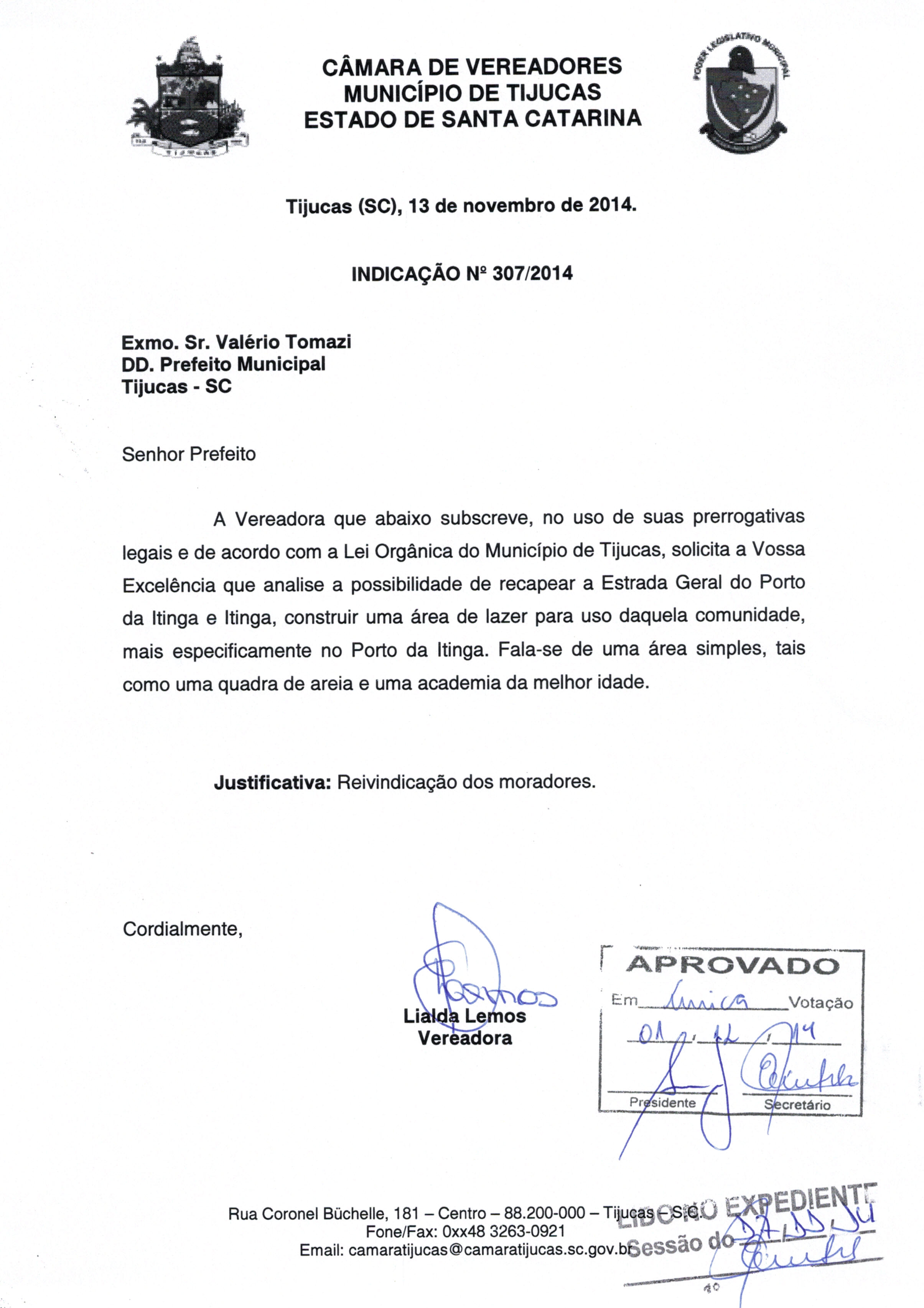 | IND. Nº 307/2014 APROVADA | Avulso | 02/12/2014 | LIALDA LEMOS | 2954.jpeg |