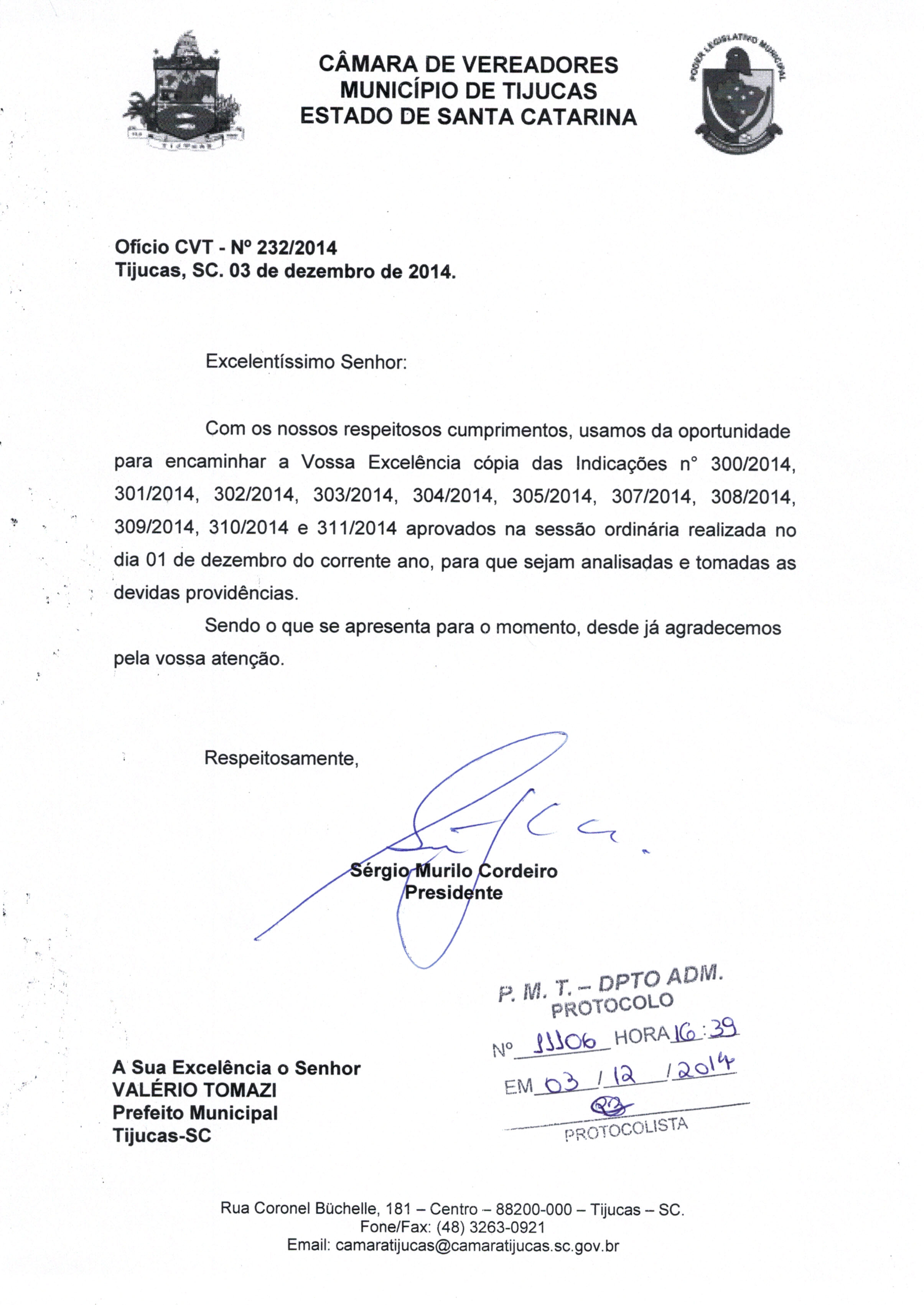| OFÍCIO CVT Nº 232/2014 | Ofício | 03/12/2014 | SÉRGIO MURILO CORDEIRO | 2994.jpeg |