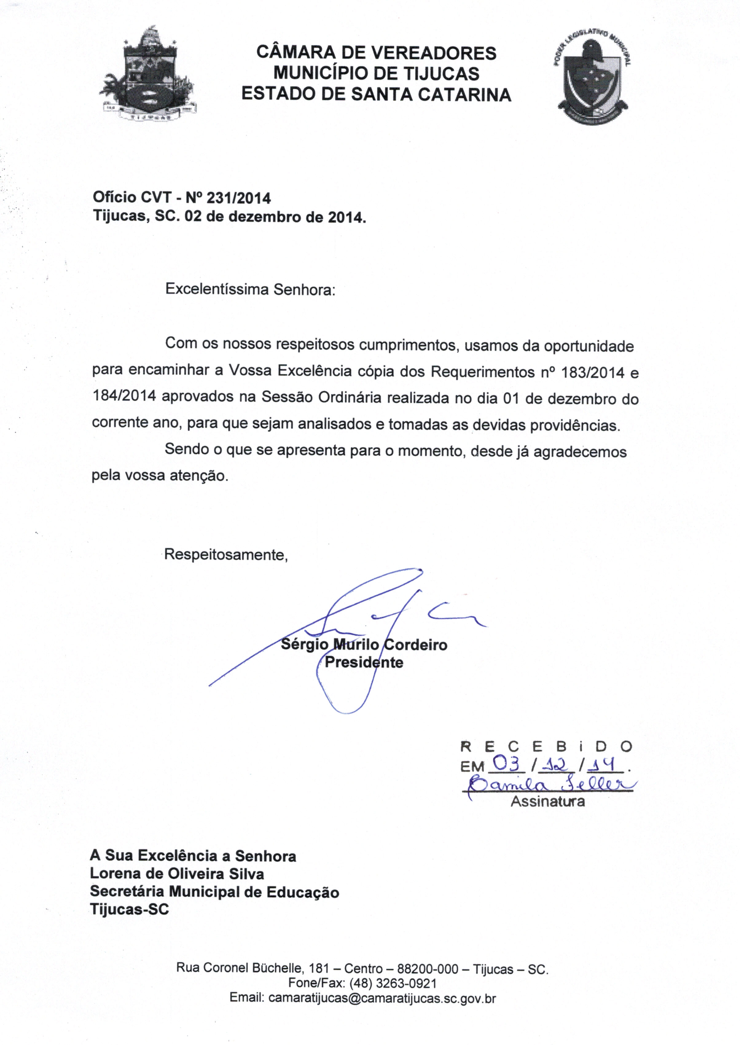 | OFÍCIO CVT Nº 231/2014 | Avulso | 03/12/2014 | SÉRGIO MURILO CORDEIRO | 2969.jpeg |