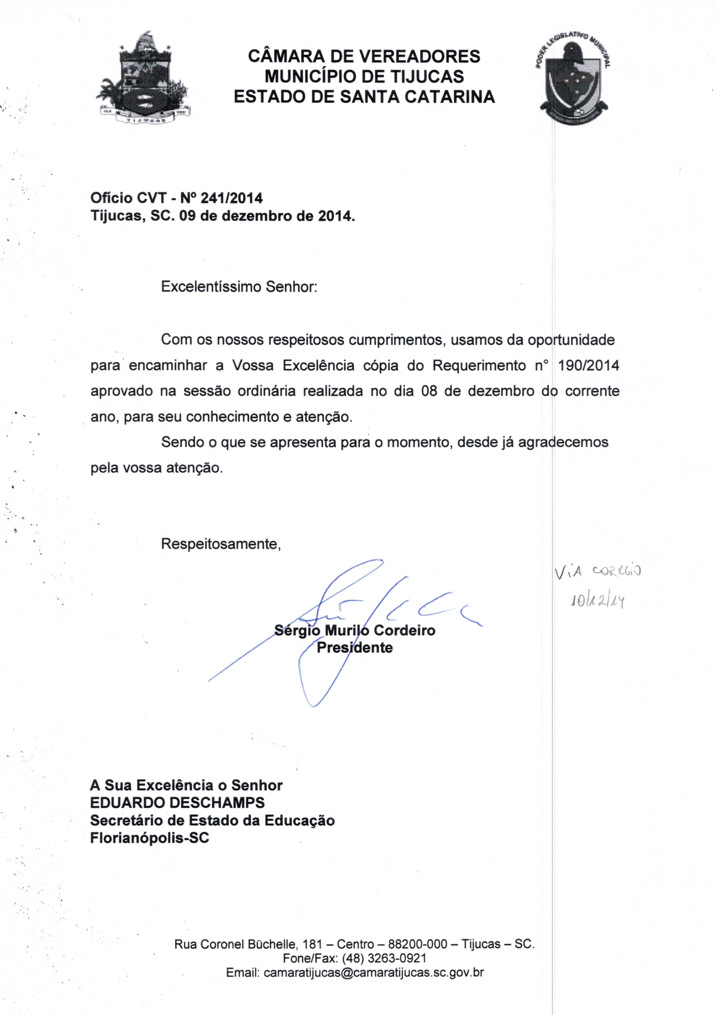 | OFÍCIO CVT Nº 241/2014 | Ofício | 10/12/2014 | SÉRGIO MURILO CORDEIRO | 3065.jpeg |