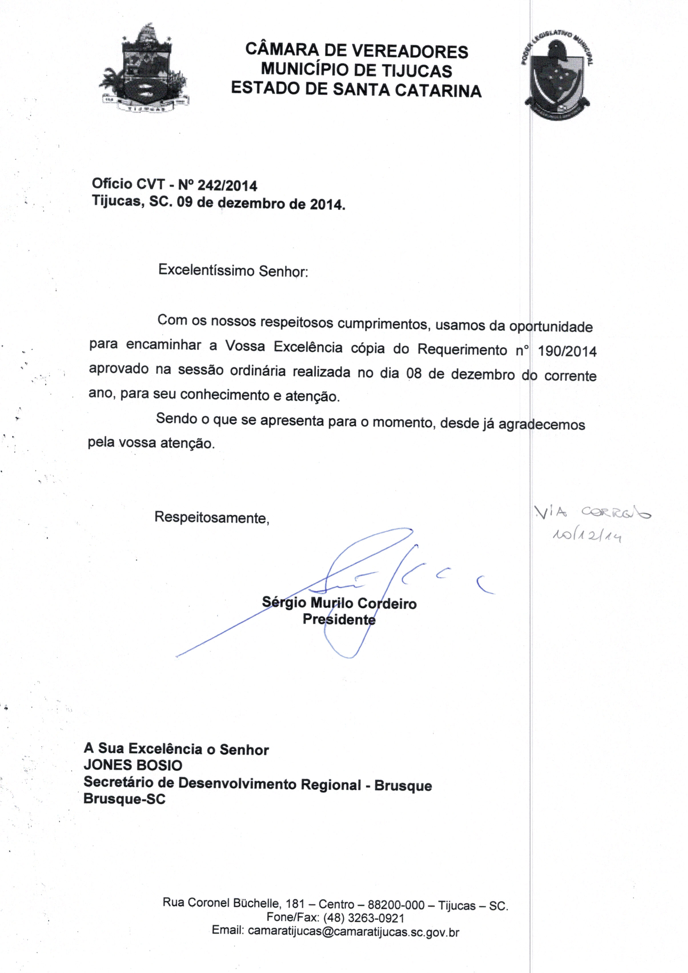 | OFÍCIO CVT Nº 242/2014 | Ofício | 10/12/2014 | SÉRGIO MURILO CORDEIRO | 3066.jpeg |