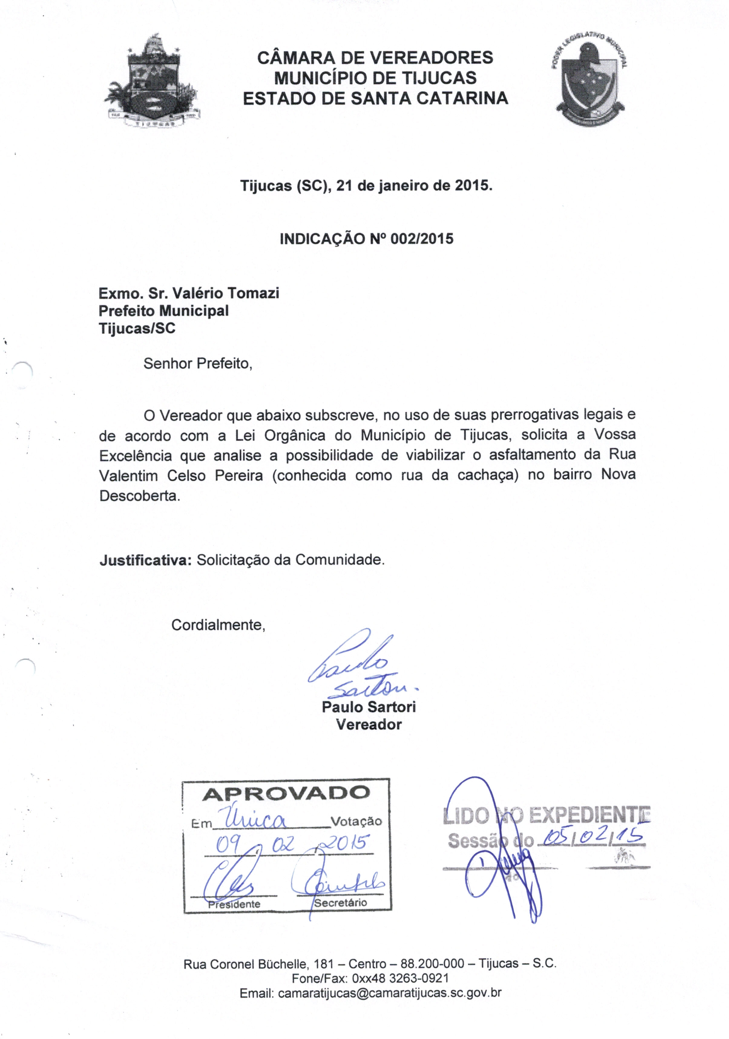 | INDICAÇÃO 02/2015 | Avulso | 21/01/2015 | PAULO SARTORI | 3224.jpeg |