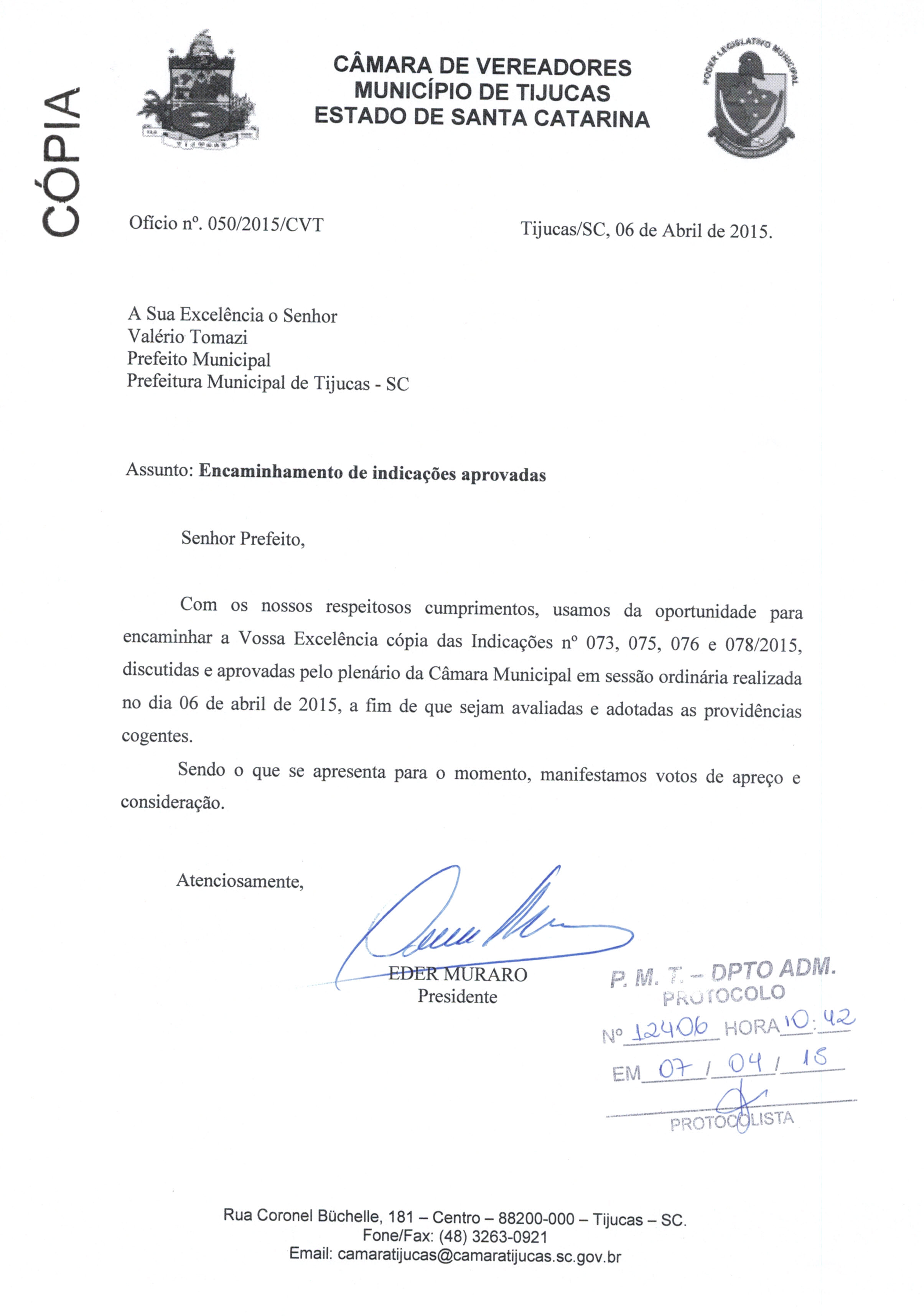 OFICIO CVT 050/2015 | Ofício | 07/04/2015 | PRESIDENTE DA CÂMARA MUNICIPAL DE TIJUCAS | 3442.jpeg |