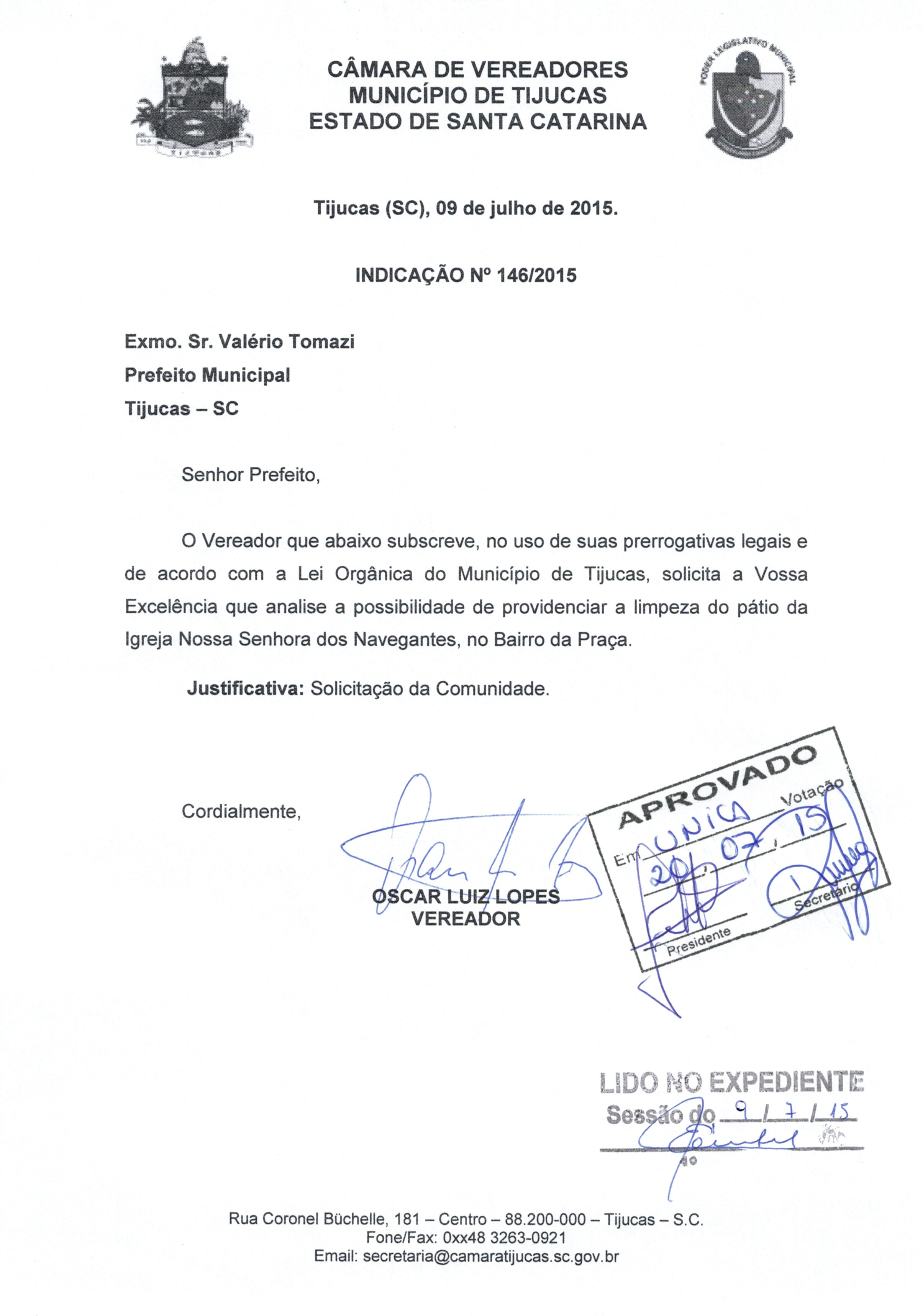 TIJUCAS (SC), 09 DE JULHO DE 2015.