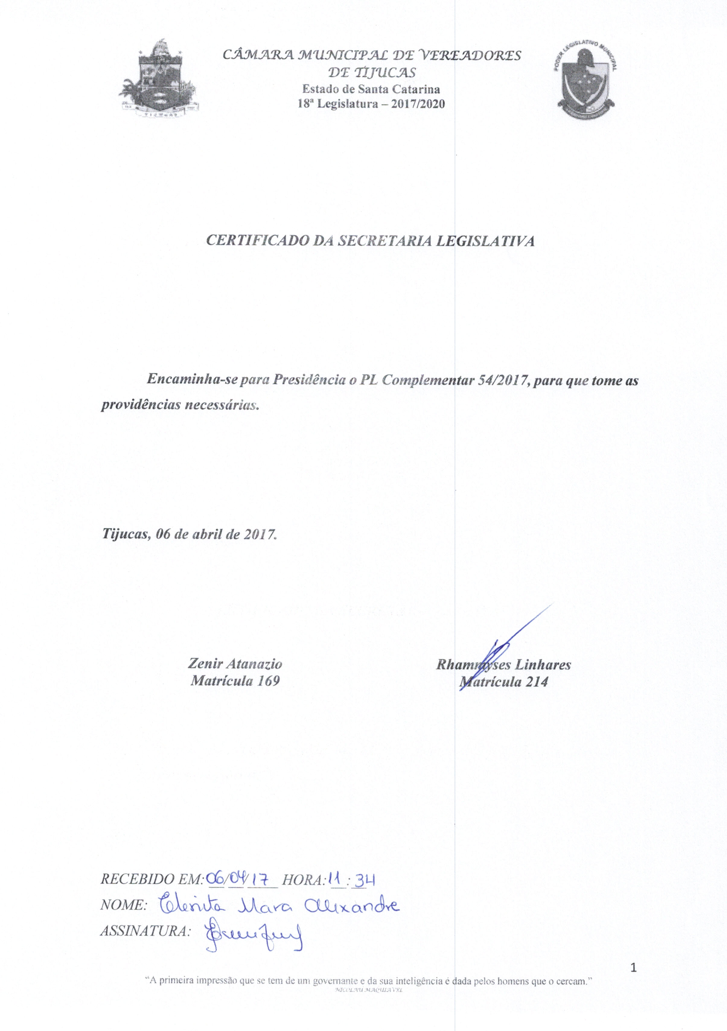 Documentos Acessórios (PROJETO DE LEI COMPLEMENTAR - EXECUTIVO nº 54 de 2017)