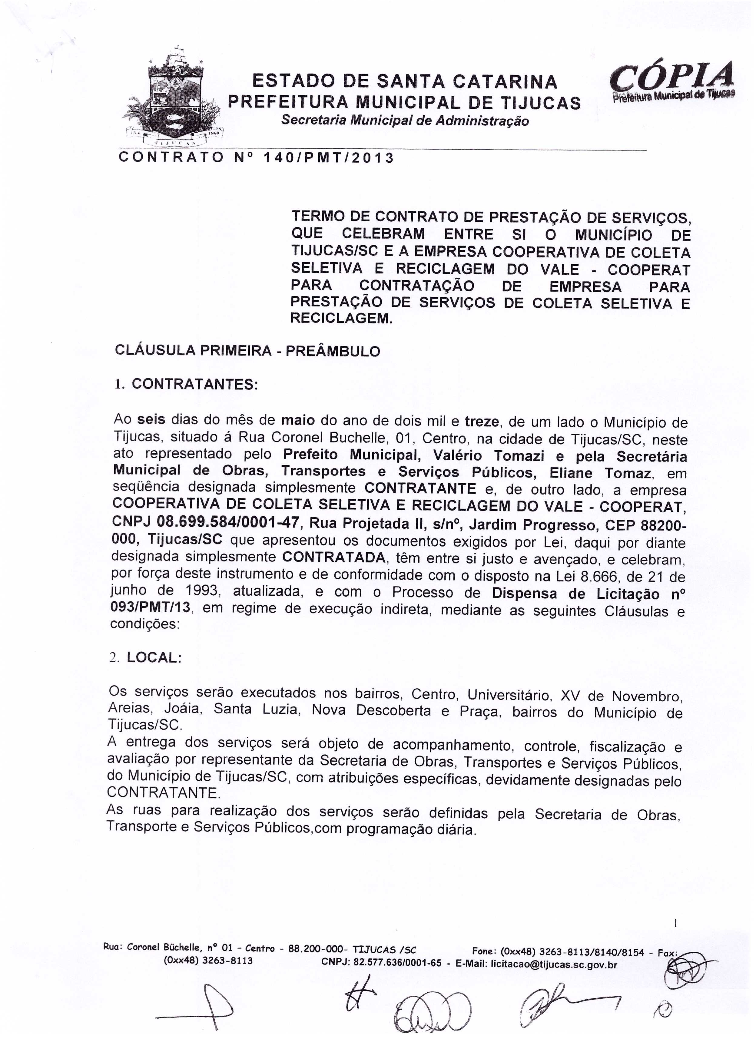 CONTRATO N° 140/PMT/2013 FL.5 | Avulso | 06/05/2013 | VALÉRIO TOMAZI | 1055.jpeg |