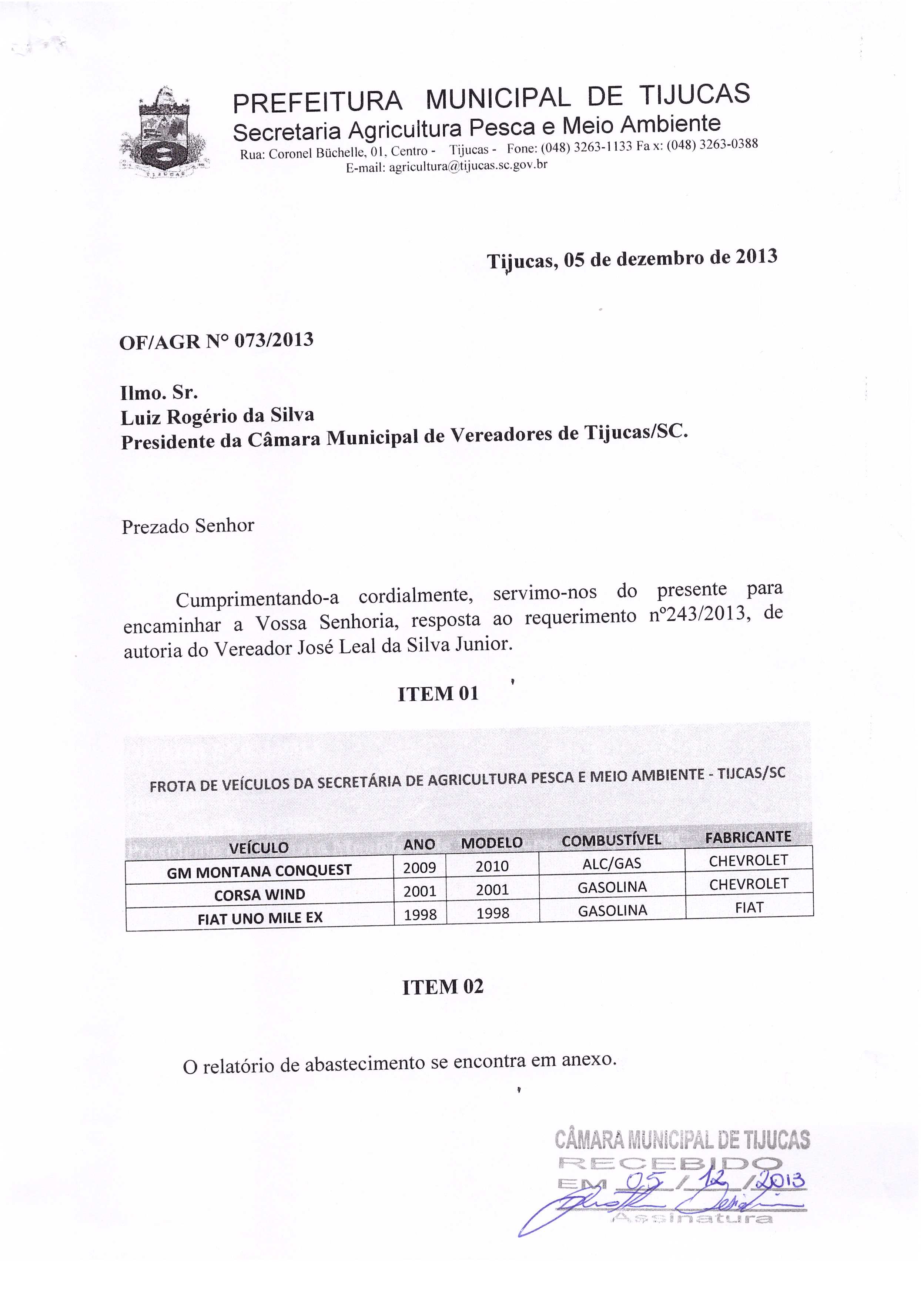 AGR N° 073/2013 | Ofício | 05/12/2013 | CLÁUDIO TIAGO IZIDORO | |