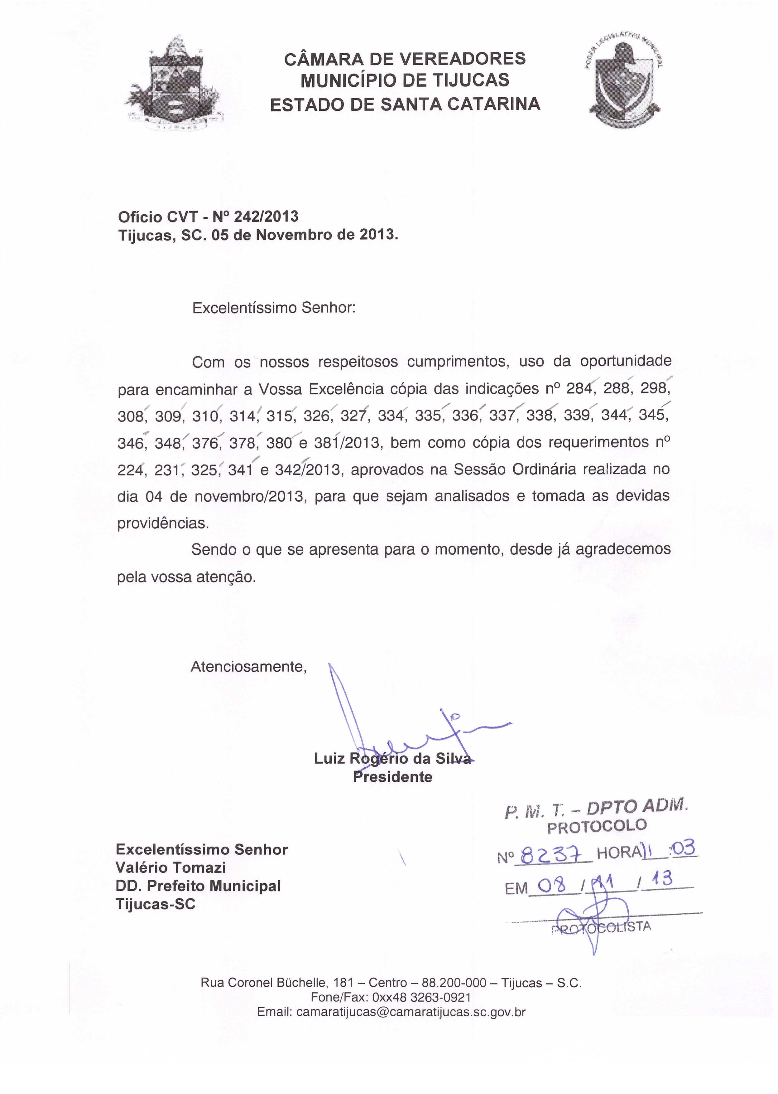 | CVT N° 242/2013 | Ofício | 05/11/2013 | LUIZ ROGÉRIO DA SILVA | 1154.jpeg |