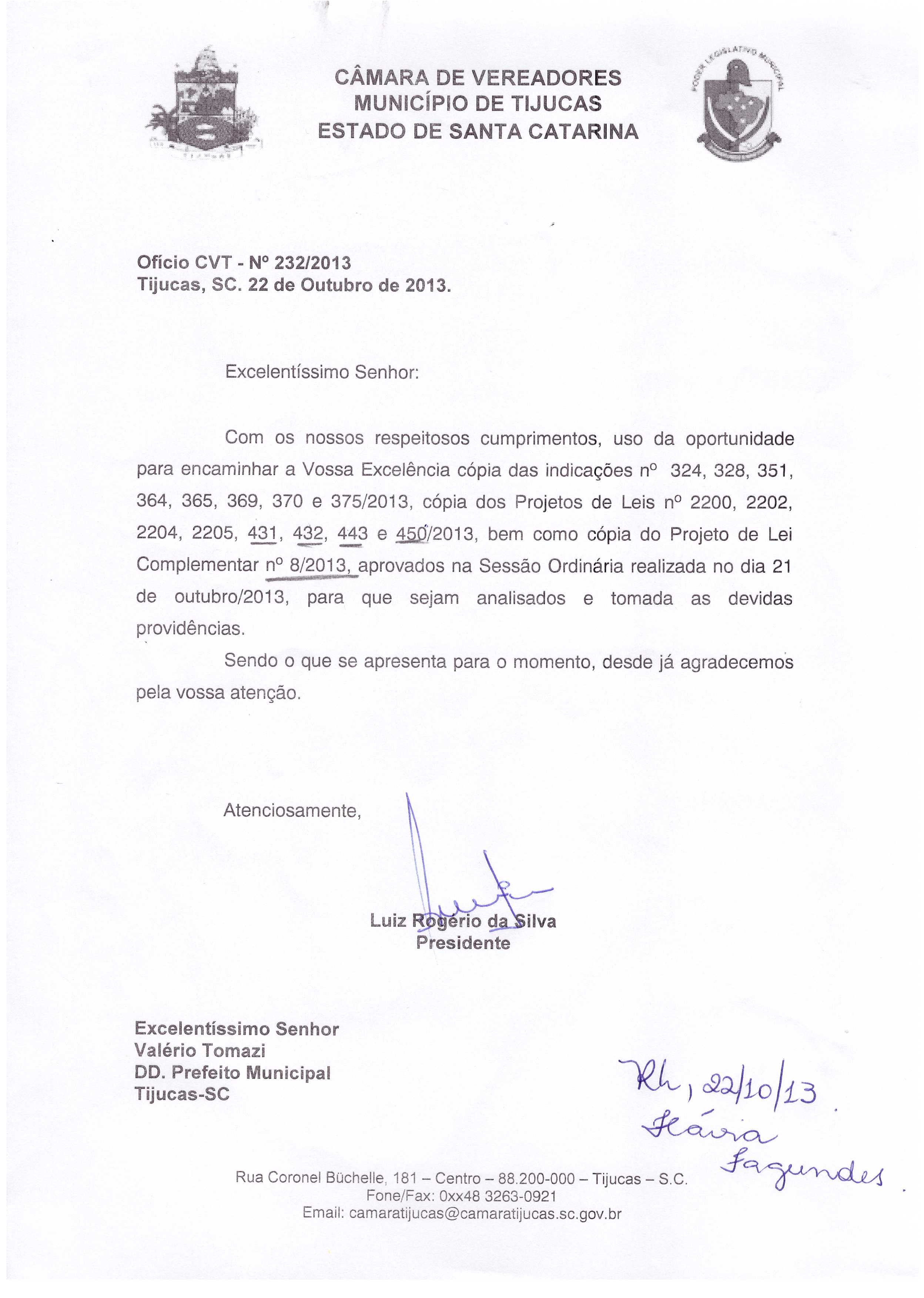 | CVT N° 232/2013 | Ofício | 22/10/2013 | LUIZ ROGÉRIO DA SILVA | 1041.jpeg |