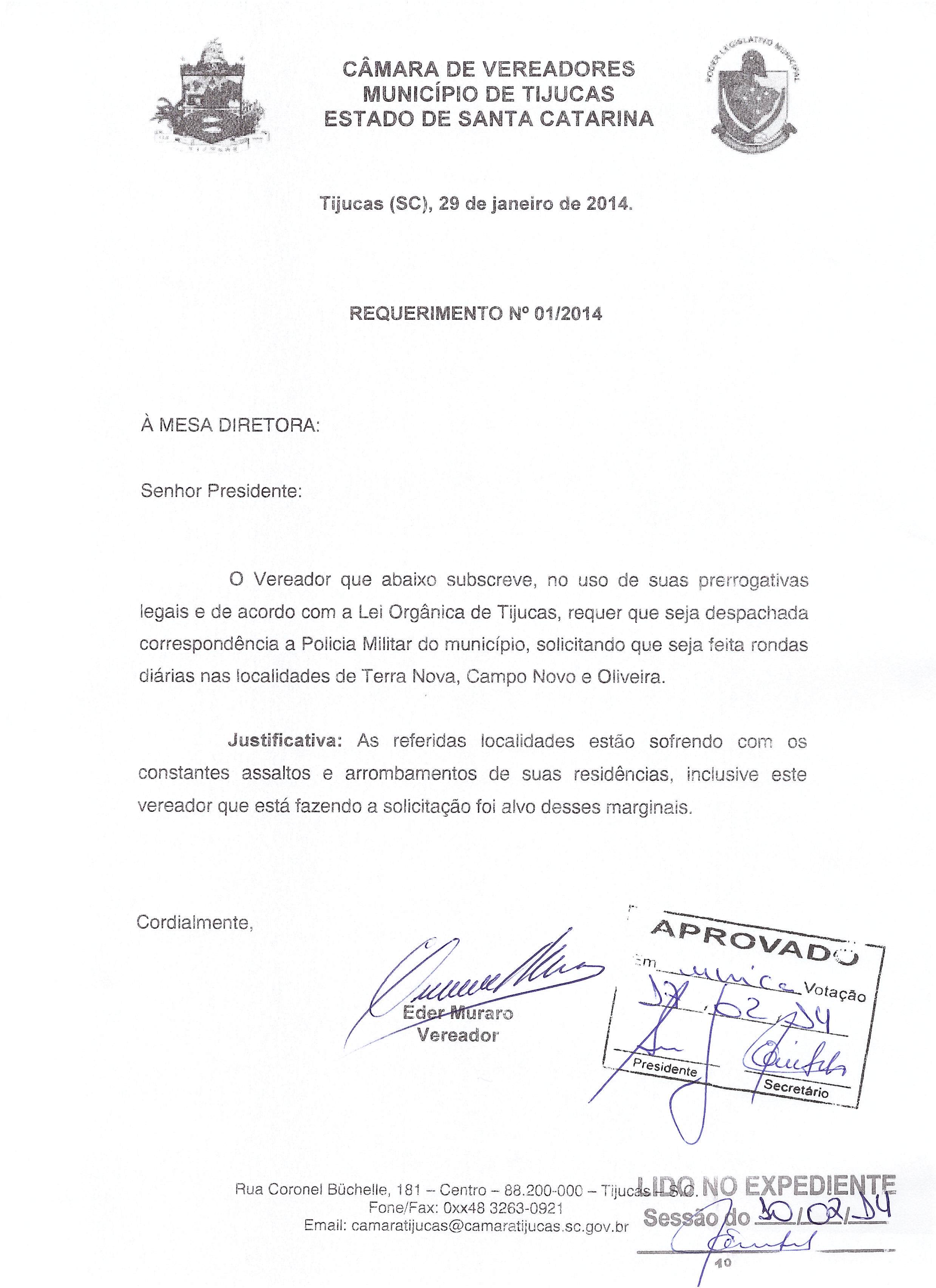 Avulso - REQ Nº 01/2014 APROVADO de 17/02/2014 por EDER MURARO (REQUERIMENTO nº 1 de 2014)