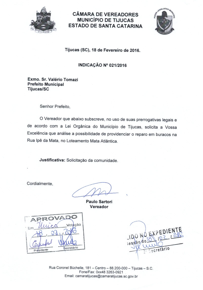 Ementa: TIJUCAS (SC), 15 DE ABRIL DE 2016.